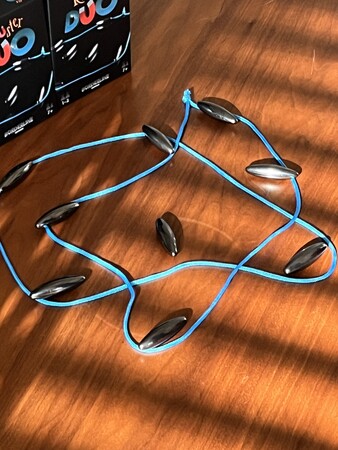 「Kluster DUO」は、12個の磁石とループ状の紐(ブルーコード)を使って遊ぶゲームです。