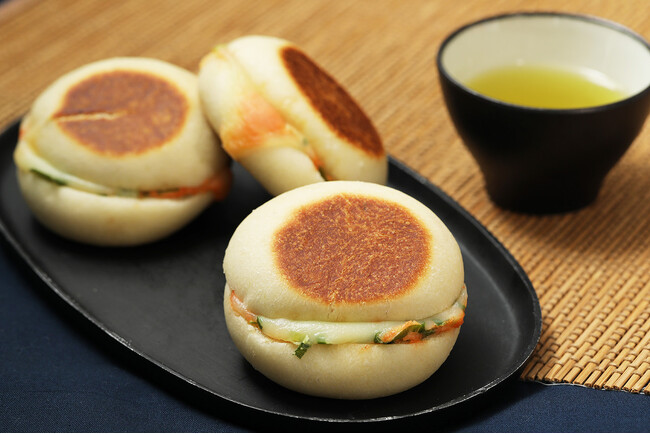 こだわり:定番人気商品『パニーニ』より展開した和と洋を掛け合わせたパニーニです。米粉生地のパンに明太子フィリング、九条ねぎ、モッツアレラチーズをサンドし、素材の旨味が引き立つ味わいに仕上げました。また、ワンハンドでお召し上がりいただける手軽なサイズ感も忙しい朝やおやつにもぴったりです。