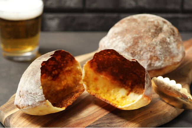 こだわり:チェダーチーズと山椒が香る、パリパリ食感が楽しいおつまみ感覚の新商品。”ピタパン”をイメージして、グランディールでこれまでにない空洞のパンをご用意いたしました。チェダーチーズのコクと山椒の清涼感がやみつきになる味わいは、お酒のペアリングにもぴったりです。
