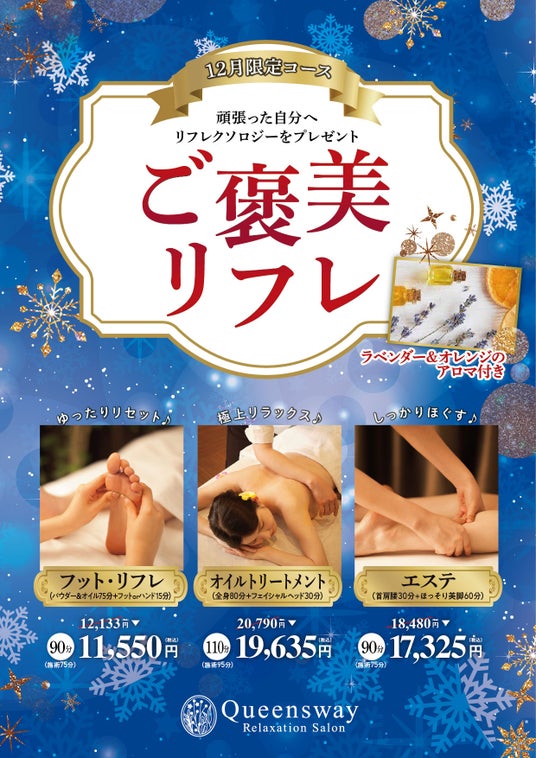 12月は1年の総決算。1年間がんばった自分へのご褒美として癒しのコースはいかがでしょうか。
