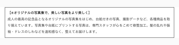 二十歳の自分らしい美しさを引き出し、感動を写真に残すらかんスタジオの成人記念撮影。レンタル料金がお得になる特典もご用意しています。