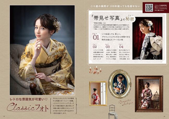 毎年、撮り下ろしで成人記念のフォトコレクションを多数紹介するらかんの振袖カタログ。その2024年版が完成し、12月25日から資料をご請求いただいた方に向けて配送を開始しました。人気の新作衣装をはじめ、バリエーション豊かな振袖コレクションとともに、らかんスタジオが特許を取得したクラシックな帯見せ写真、ストーリーを感じるスタジオ背景、当日の流れがわかるスタジオ体験などを見ることができます。