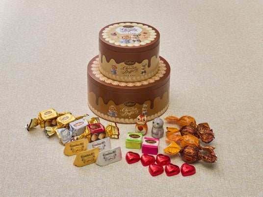 詳細:2段重ねのチョコレートケーキをイメージしたスペシャルなデザイン缶が登場!缶は上段と下段に分かれており、それぞれにカファレルで定番人気のチョコレートがアソートされています。チョコレートを食べ終わった後は小物入れやお部屋のアクセントとしても便利にお使いいただけます。