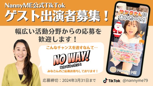 締め切り: 応募締め切りは2024年3月31日までとなります。選考結果はけいこ先生のTikTokアカウントおよびNannyME公式ウェブサイトで発表されます。