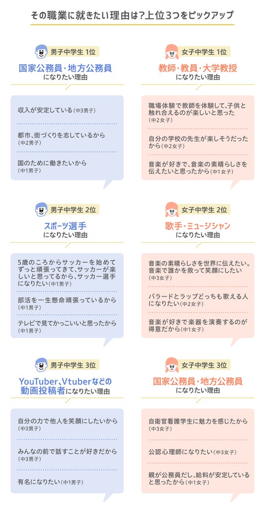■上位3位の職業に就きたい理由は?中高生のリアルな声を紹介!