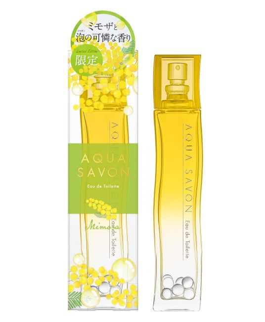 『ミモザと泡(シャボン)の可憐な香り』は、透明感のあるみずみずしいグリーンフローラルからやさしく上品なミモザをイメージしたフローラルへと表情を変える、春らしさを楽しめる香りとなっています。「アクア シャボン」ならではの、清潔感のあるシャボンの香りが調和した春季限定の香りです。