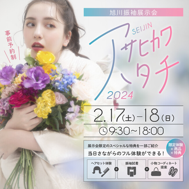 2月17日・18日の2日間限定で写真工房ぱれっと旭川店で振袖展示会を開催いたします。