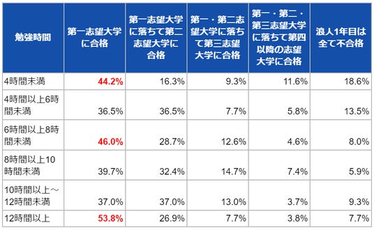 1日12時間以上勉強していた浪人経験者が53.8%と最も高い合格率だが、合格率は勉強時間に比例せず。成功へのカギを握るのは?