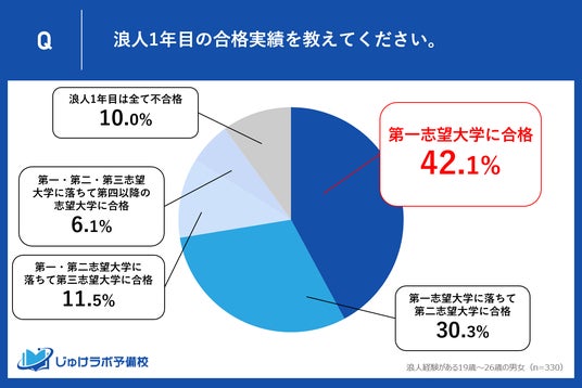 調査によると、浪人経験者の42.1%が浪人1年目で第一志望大学への合格を実現していることがわかりました。