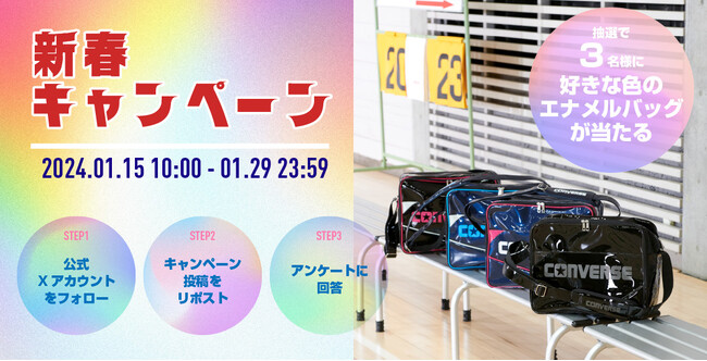 ゼット株式会社(本社/大阪市天王寺区、代表取締役社長/渡辺裕之)の製造部門を請け負うグループ会社のゼットクリエイト株式会社(本社/大阪市天王寺区、代表取締役社長/和田耕一)が、コンバースブランドのバスケットボールウェア・バッグのライセンシーとして、CONVERSE Basketball Wear公式X(旧Twitter)アカウントにて新春キャンペーンを開催中です。