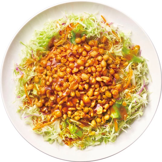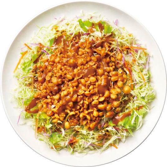 濃いめに仕上げたたれとザクザク食感の特製やみつき玉で、野菜を手軽に、難なく食べられる新感覚のサラダセット商品です。(サラダ用カット野菜100~150g分)