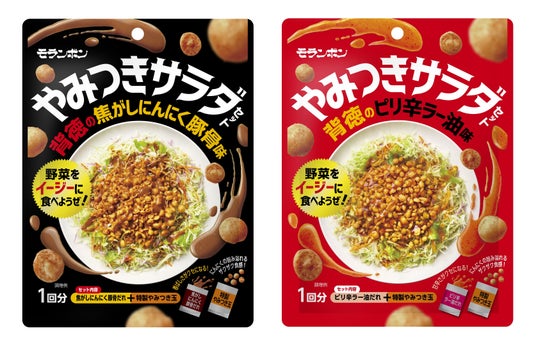 モランボン株式会社(本社:東京都府中市 代表取締役社長:全 峰 碩)は、青果売場向け商品として、「やみつきサラダセット 背徳の焦がしにんにく豚骨味・背徳のピリ辛ラー油味」を2月15日(木)より新発売いたします。