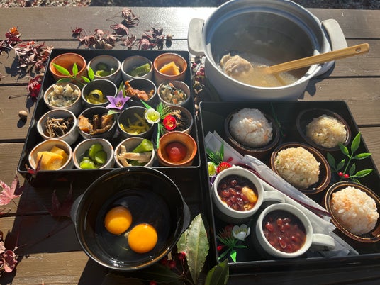 冬限定、鶏雑炊朝食~8種の小鉢付き~