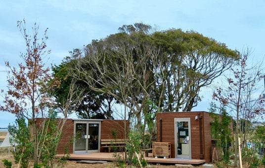コンテナをアップサイクルして建てられたコンセプトショップ。壁には、地元の高齢者や障がいのある方々が丁寧に手作業で剥いた落花生の「殻」を、捨てずに練りこんでいます。また、ドアの取手にはピーナッツの森の枝を使用、外のベンチにも廃材を使用するなどBocchiの環境への想いが存分に体現された空間になっています。