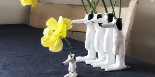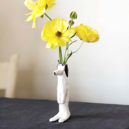 犬の頭に花を生けるなんて発想はエレオノールだけ!?エレオノールのユーモアがたっぷり詰まったアイテムです。花を一輪挿すとご機嫌になります。