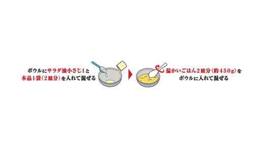 (2)材料(温かいごはん・サラダ油)と混ぜるだけで作ることができます。(炊飯器での炊き上げ不要)