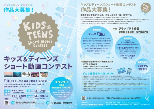 『キッズ&ティーンズ ショート動画コンテスト』は、キッズやティーンズが、未来の環境について考え、海への思いをカタチにするイベントです。家族と行った海の思い出や、海の素晴らしさ、海にまつわる問題などを、動画制作(写真だけの構成を含む)を通して考える機会となればと企画されました。