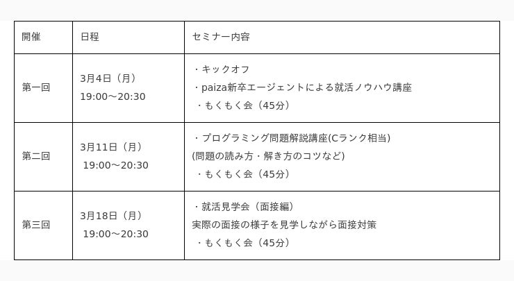 paizaキャンプで実施する就活対策セミナーの内容と開催日