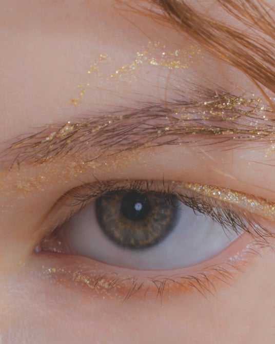メイクの主役になるイエローゴールドにシルバーのグリッターをミックス。
