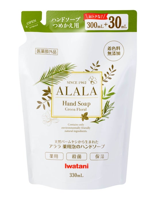 岩谷産業株式会社(本社:大阪・東京、社長:間島寬、資本金:350億円)が展開する家庭用洗剤「ALALA(アララ)」シリーズから、「薬用泡のハンドソープ」および「キッチンハーブ(食器用洗剤)」のつめかえパックを新発売します。「薬用泡のハンドソープ」のつめかえパックは2024年2月上旬、「キッチンハーブ」のつめかえパックは2024年2月下旬より、スーパー、ドラッグストア、ホームセンターにて順次発売開始いたします。