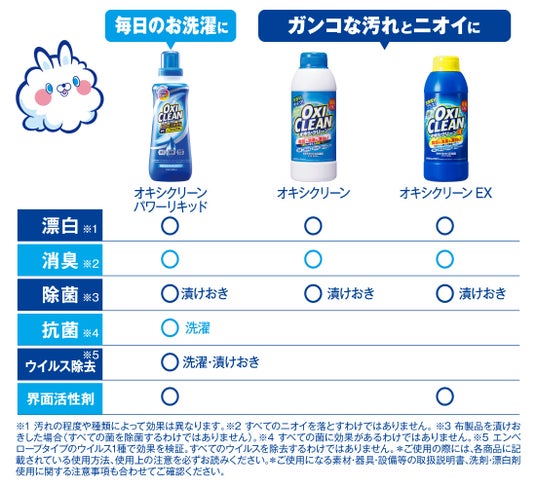 酸素の力で汚れを落とす、オキシクリーンの液体タイプです。液体だから溶かす手間なく、毎日のお洗濯をパワーアップ。おしゃれ着や色柄もののお洗濯にもお使いいただけます※。