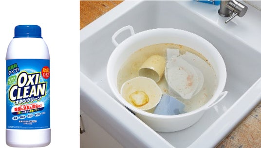 一方、粉末タイプの「オキシクリーン」は、頑固な汚れやニオイのついた衣類の洗濯に加え、食器の茶渋を落としたり、窓ガラスの汚れにも使えたりと家中のお掃除でお使いいただけます。まずはお洗濯には液体タイプの「オキシクリーン パワーリキッド」、お掃除には「オキシクリーン」と使い分けてみてください。