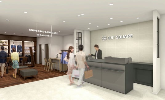 「SUIT SQUARE(スーツスクエア)」は、近年の働き方やライフスタイルの変化によるビジネスウェアの多様化に対応するため、4つのブランドを1店舗に集結する他、店舗ごとで地域特性に合わせたサービスを提供するウィジェット型の店舗です。また、ネット連携による豊富な在庫とリアル店舗の接客サービスの両メリットを最大限に活かした当社独自のシステム「デジラボ」を導入しています。