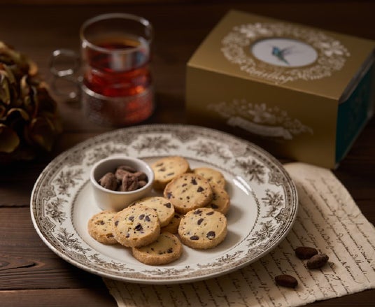 バニラージュ カカオバニーユカカオバニーユは、ブルボンバニラの香りを最大限引き出す配合にこだわったディアマンバニーユに、チョコレートチップ、カカオニブの香りと食感を加えた、よりリッチなクッキーです。カカオニブとは、カカオ豆をローストして細かく砕き、余分な皮などを取り除いたチョコレートになる前の原料で、カカオの香りをダイレクトに感じることができます。