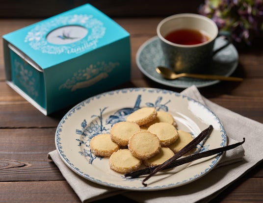 フランス産発酵バターを100%使用し、ブルボンバニラの香りを最大限引き出す配合にこだわっています。アーモンドプードルと隠し味のお塩で、さっぱりとしながらも深い味わいです。ブルボンバニラの芳醇な甘い香りと、さっくりとしたクッキー、食感のアクセントにザラメが加わり、止まらない美味しさに仕上がりました。