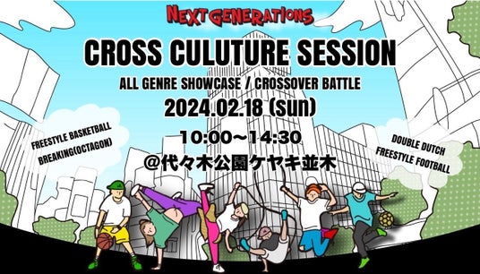 このたび、座学で習得したイベントづくりのノウハウを生かし、2月18日(日)代々木公園けやき並木にて、ブレイキン・ダブルダッチ・フリースタイルフットボール・フリースタイルバスケットボールのジャンルを超えたストリートスポーツによるバトル・ショーケースイベント「CROSS CULTURE SESSION」を受講生がオーガナイズします。