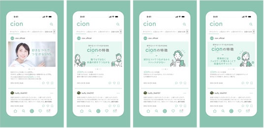 好きな「コト」でつながる新時代SNS 「cion(シオン)」「cion(シオン)」は、ユーザー同士は従来の不特定多数の人でつながるのではなく、特定多数の好きなカテゴリーでのみつながり、また、つながったユーザーが共通のフォローしているカテゴリー以外は見られないクローズド型なのが、「cion」の特徴です。