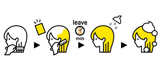 乾いた髪をよくとかし、そのままたっぷり塗布。目の粗いブラシでなじませて待つこと5分。しっかり洗い流したら、あとはいつも通りシャンプー&トリートメントするだけ。