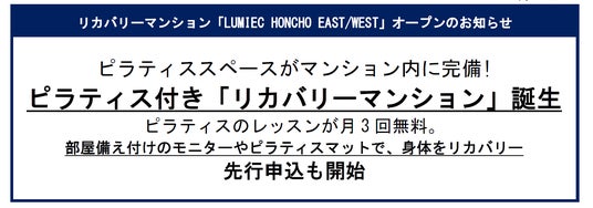 リカバリーマンション”ピラティス付き賃貸マンション「LUMIEC HONCHO EAST/WEST」が誕生しました。