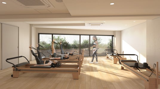 マンション1Fにピラティススペースを完備。グループレッスンであれば月3回、プライベートレッスンであれば月1回、プロのインストラクターによる、ピラティスのレッスンを受講することが可能です。
