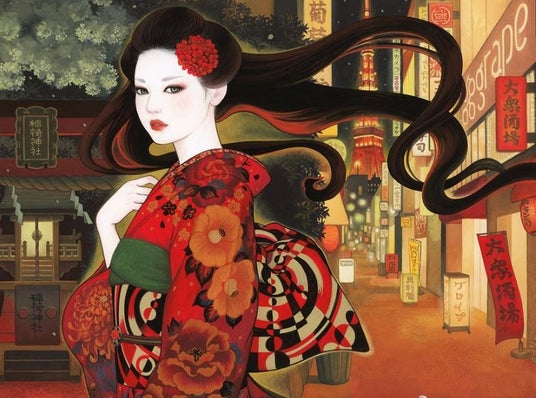 レトロな世界観や空想上の生き物など多様なモチーフや表現を駆使して、日本の伝統や風習・風土、そこに込められた人々の想いをくみ取りながら、神秘的な女性像を描き出す加藤美紀氏。東京都指定有形文化財「百段階段」に佇むモダンガールをモチーフにした本企画展のための新作をお披露目いたします。