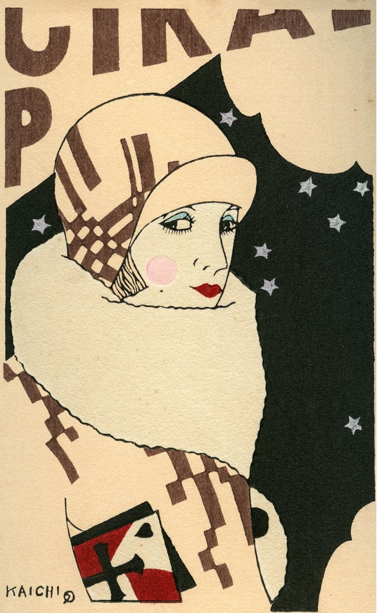 京都アール・デコの旗手、小林 かいち「二号街の女」のモダンなクリアファイル付です。
