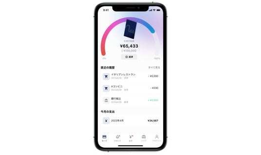利用履歴の速報確認や本人認証もアプリで完結。クレジットカードを初めて利用する方も安心して利用できるよう、好きなタイミングで可能な返済や使いすぎを防止するUIを特徴としています。