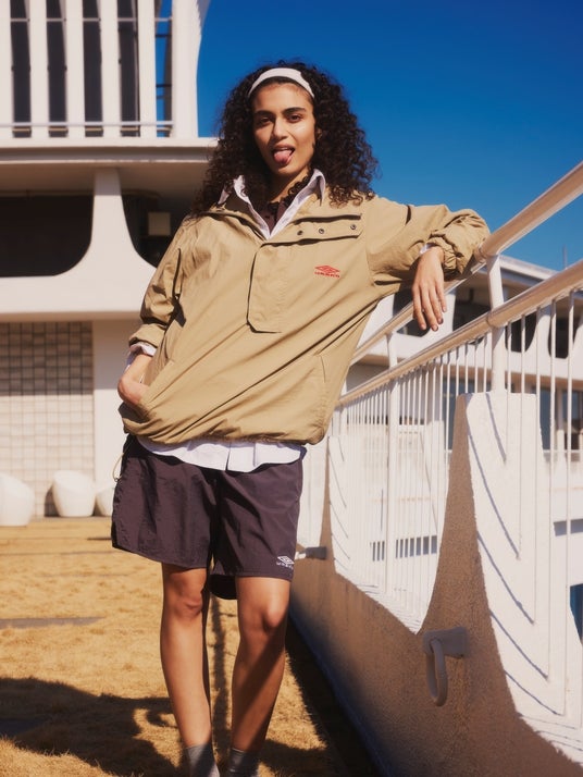 このコレクションは、UMBROの100周年を迎える今年に合わせて制作されました。スポーツウェアのアイデンティティを尊重しながらも、街に馴染むデザインを追求し、日常着として活用できるアイテムに仕上げています。ウォームアップアノラックパーカ、コットンセーター、ニットポロシャツ、ウォームアップショーツの4型のカプセルコレクションは、素材選定やオリジナルパターン、サイズバランスの追求、実用性の考慮など、細部にまでこだわって作り込まれています。第一弾の2型は2024年3月9日に、第二弾の2型は2024年4月12日に発売されます。