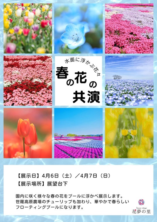 世羅高原農場のチューリップも加わり、華やかで春らしいフローティングプールになります。