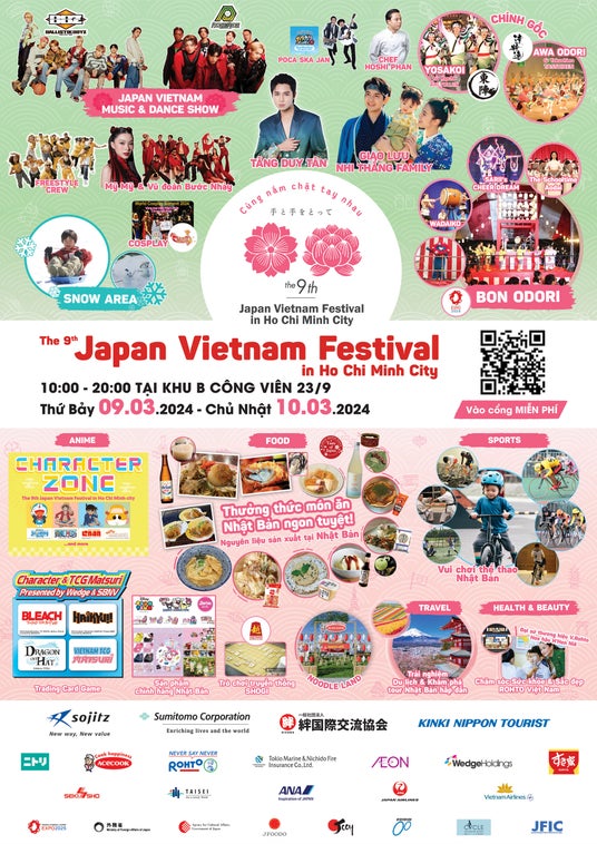 2024年3月9日(土)・10日(日)開催、第9回Japan Vietnam Festivalへ、「食」「文化」「伝統」「スポーツ」「日本製品」などに関連した日越企業や団体が約250ブースが大集結!