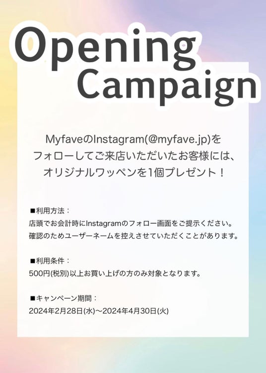 株式会社クレアワークス(本社:東京都墨田区、代表取締役:国松 久益)は、2024年2月28日(水)世界に一つのオリジナルグッズ作りが体験できるお店『My fave(マイフェイブ)』を新大久保(東京都新宿区)に新規オープンいたします。