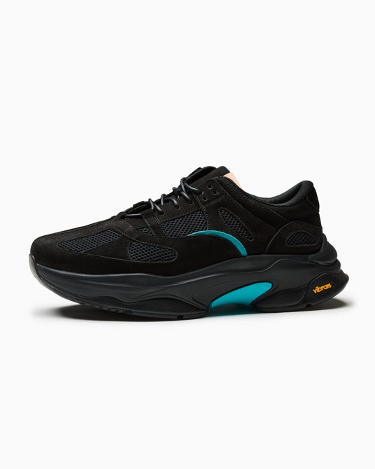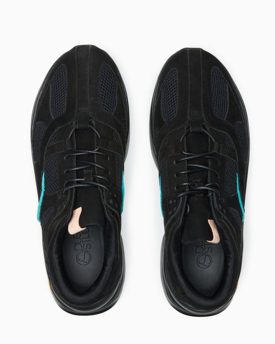 ファーストカラーには極楽鳥として知られるカタカケフウチョウからインスパイアされたカラーパレットを採用。アッパーには黒のヌバックレザーを使用し、アクセントにはターコイズブルーが巧みに施され、都市の中で一際輝く存在感を放つデザインが完成しました。