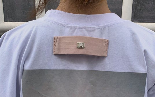 こちらの大手まんぢゅう KIMONO T についてですが、繊細できめ細かい大手饅頭の皮をモチーフにして染色を施した、細かい綾地が印象的なデニム素材が、バックスタイルのHANGER HOOK (吊るすパーツ)部と フロント下部に採用されている。