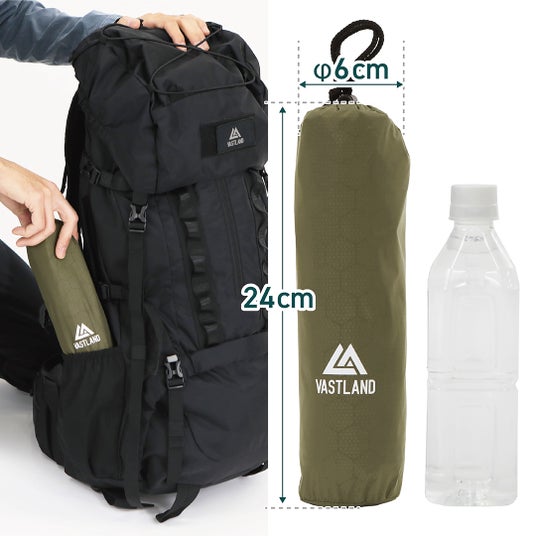収納時は500mlペットボトルほどのサイズに収まるため、荷物量を減らしたい徒歩キャンプにおすすめです。