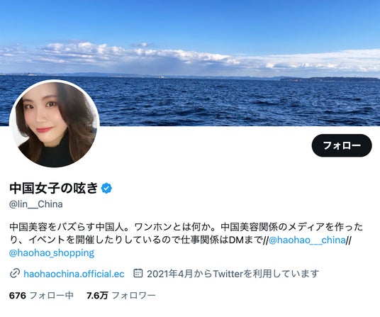 ワンホン協会の発起人である中国女子の呟きはこのような流れを受け、2021年よりワンホンや中国美容・トレンドに関する情報発信をSNS上で継続的に行ってきました。X(旧Twitter)アカウント「中国女子の呟き」は現在7.6万フォロワーを集めています。