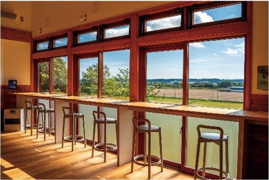▼北海道らしい田園風景を眺めながら仕事ができる非日常空間のワークスペース