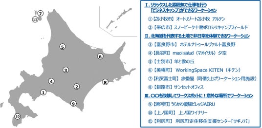 ※地図中の「1. 【苫小牧市】 オートリゾート苫小牧 アルテン」と「7. 【利尻富士町】 旅番屋(町借り上げワーケーション用施設)」については、プレスリリース内で紹介しています。