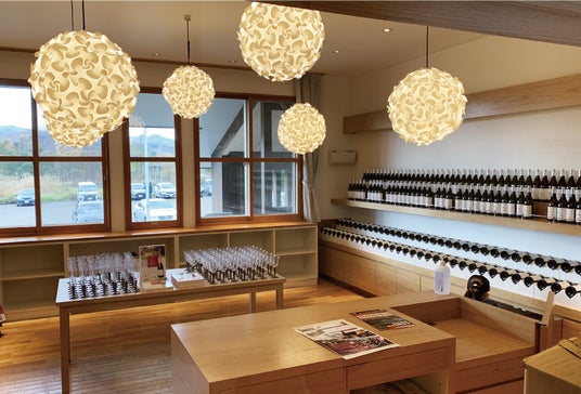 ・廃校の体育館に、ぶどうの処理を施す機械のほか、湿調機能付きのワインタンク、ワイン樽、洗浄機、架台や瓶詰機などのありとあらゆるインフラ設備を充実させ、高品質なワインを製造。