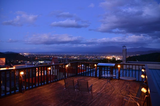 ・屋上にある展望テラスからは富良野盆地が一望でき、十勝岳連峰は必見。夜には街の夜景、満点の星空が楽しめる。