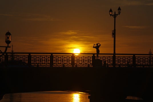 ▼仕事の手を止めて眺める窓の外には釧路川河口に沈む「世界三大夕日」